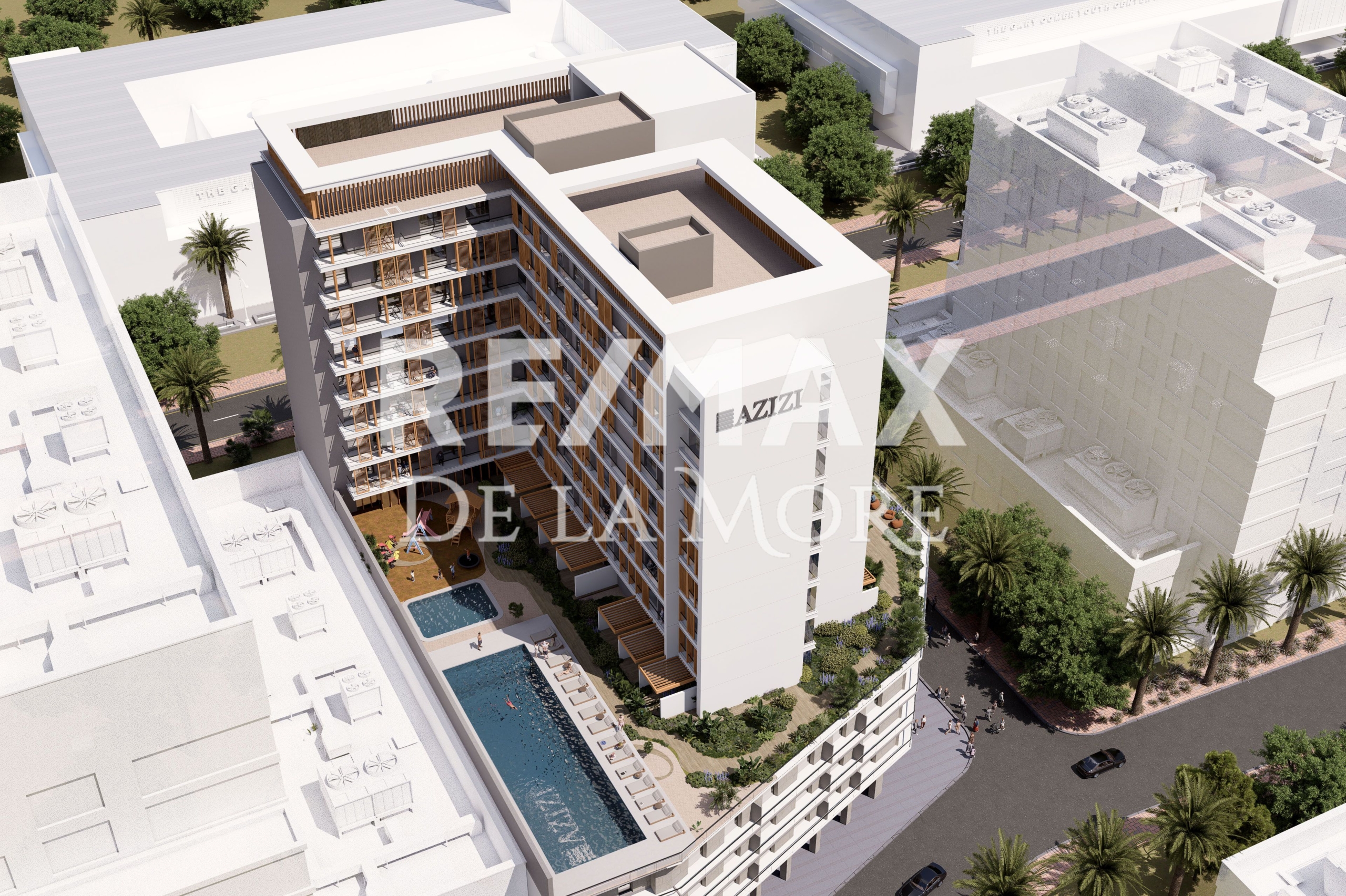 Azizi Lina by developer Azizi is an off-plan residential project located in Downtown Jebel Ali, one of Dubai’s emerging business and lifestyle destinations. Designed in a modern architectural style, the building features elegant façades and floor-to-ceiling windows that create bright, open spaces in harmony with the city’s dynamic surroundings. The development comprises studios and 1–2 bedroom apartments across nine residential floors, all offering functional layouts, premium finishes, and contemporary interiors.
