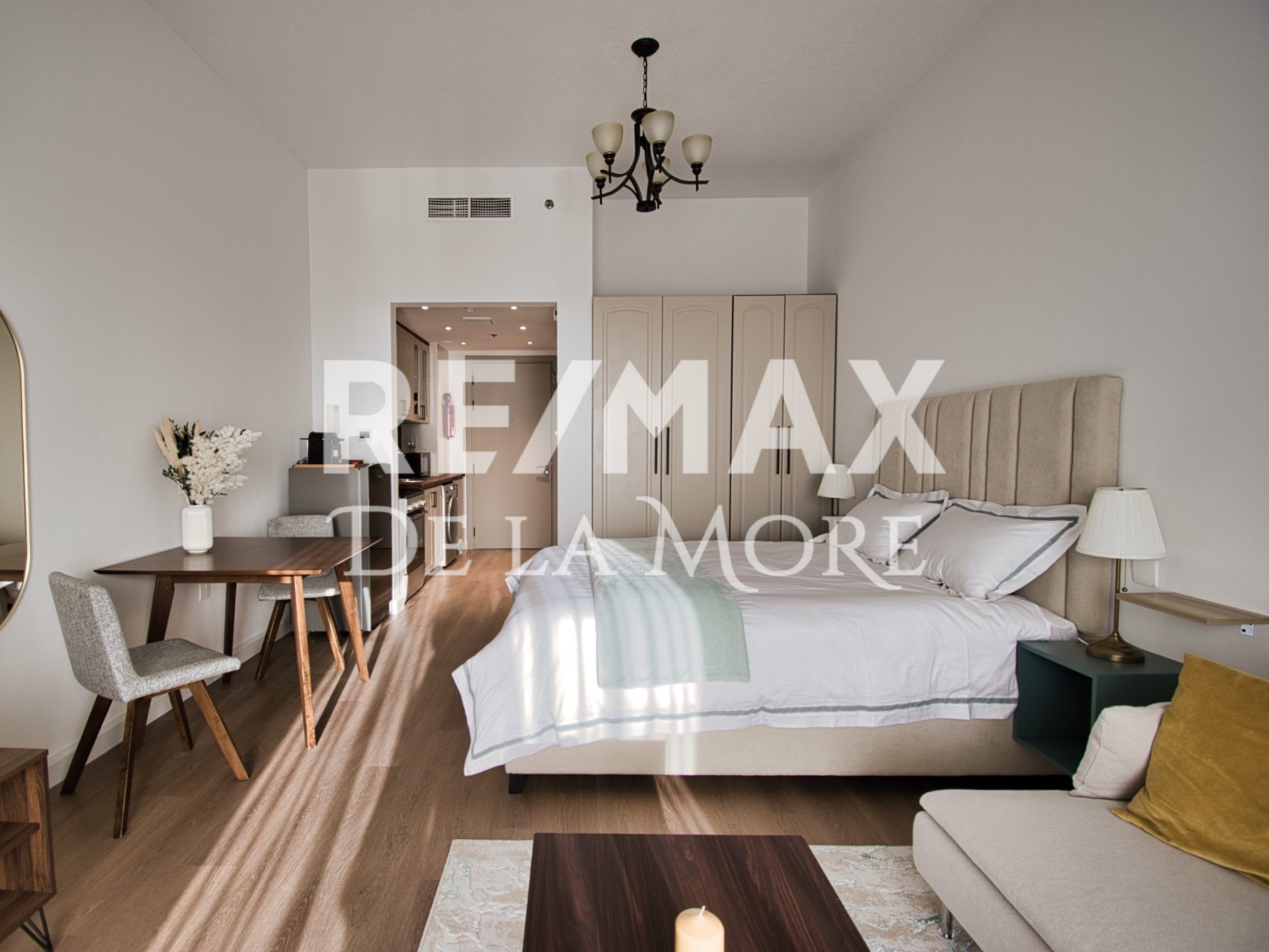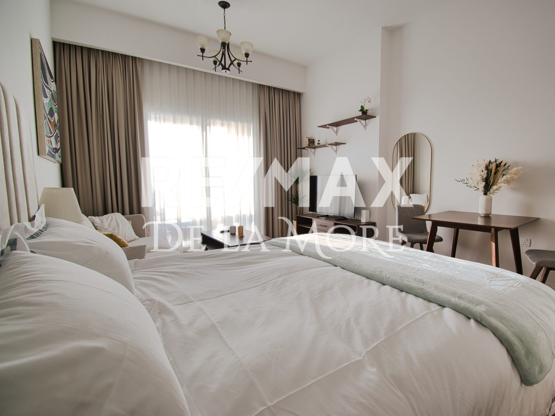 Stunning fully remodeled studio in pristine and brand new condition in Royal Breeze building, Al Hamra Village. Beautiful sea and sunset view from the balcony. All bills and internet included. Available for short term or long term rent from 1.6.2026